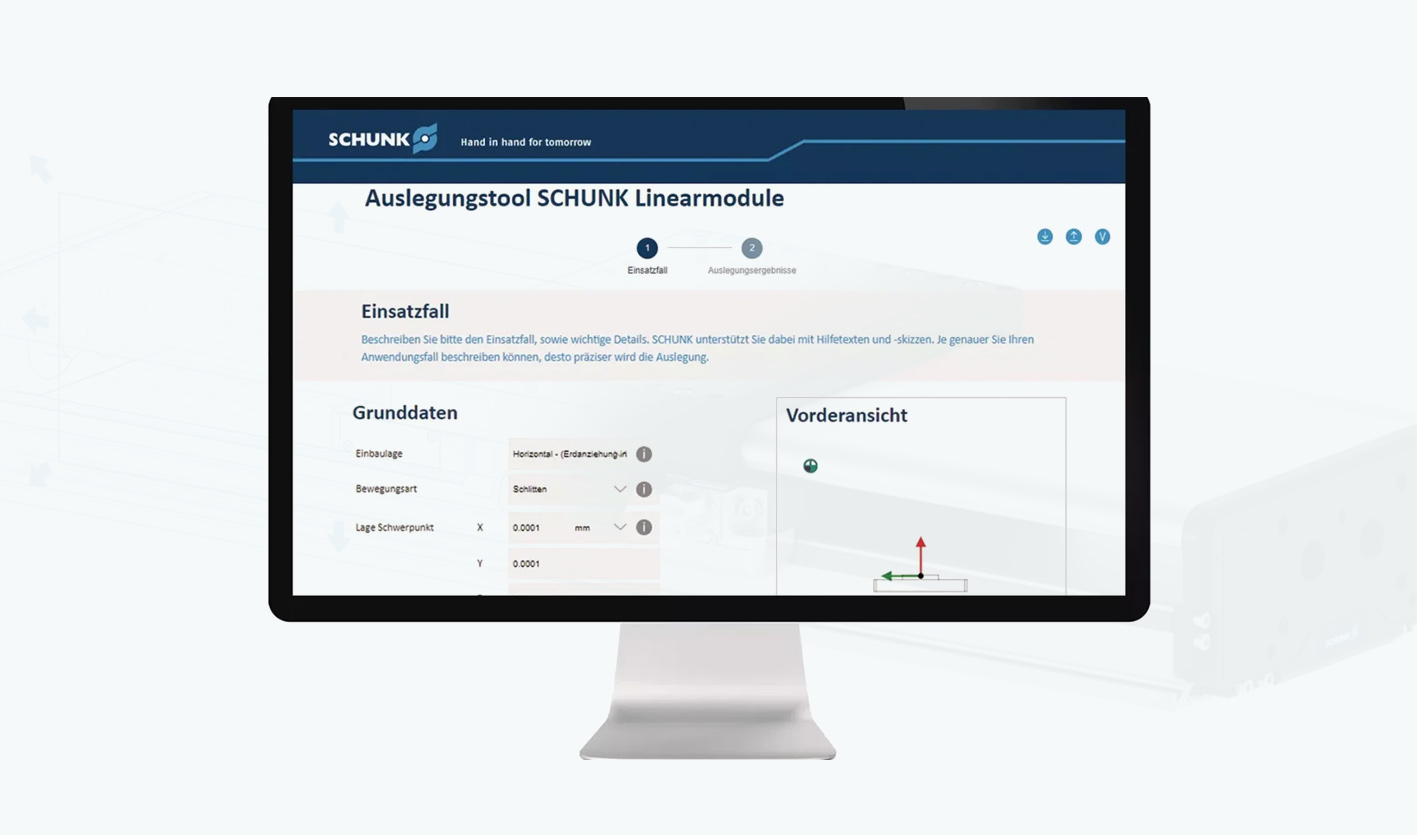Linearmodul-Tool von Schunk zur Auslegung und Konfiguration