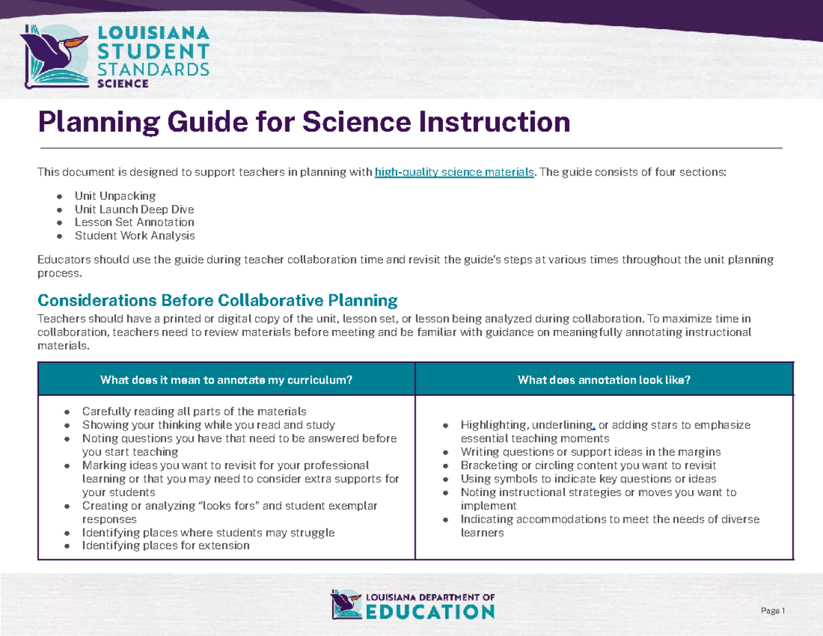 Planning Guide for Science Instruction: Unit & Lesson Annotations - Studocu