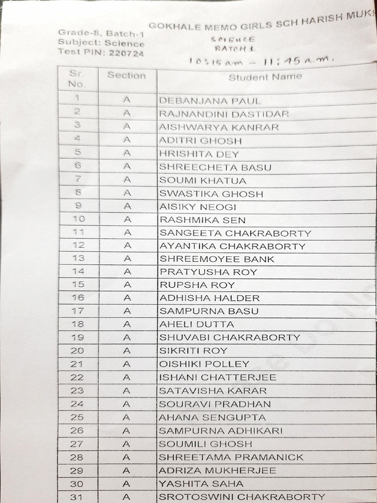 Grade-8__Science__Batch-3__Roll-List | PDF