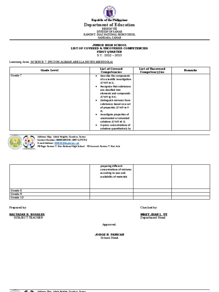 Grade 10 Science Unpacked MELCs: Key Learning Competencies Overview ...