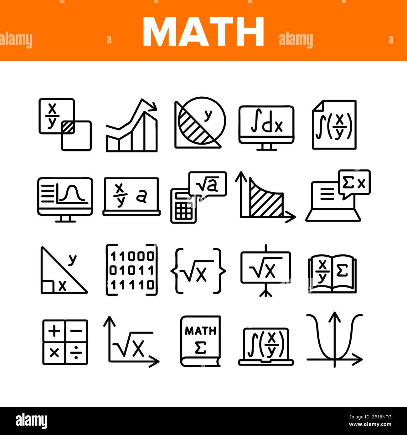 Math Or Math Science Icons Black & White Thin Line Set Big Stock Vector ...