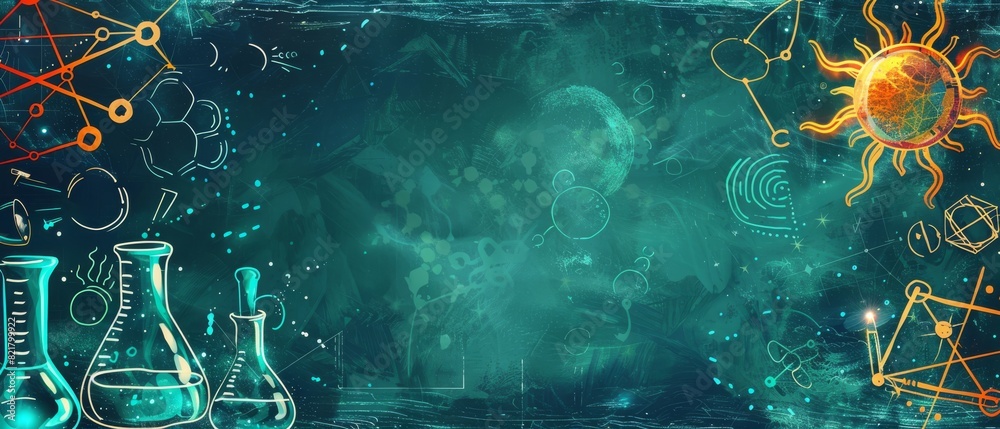 Vector hand drawn colorful science education background with copy space ...