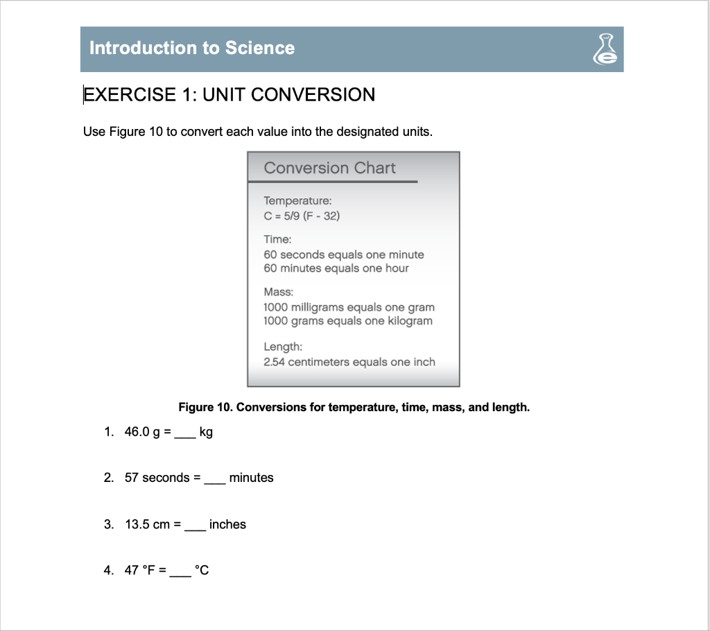 Intro to Science Data Sheets and Post-Lab - EXERCISE 1: UNIT CONVERSION ...