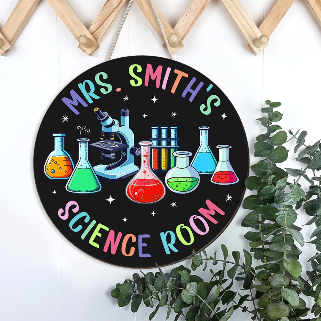 Custom Science Teacher Hanging Door Sign, Personalized Teacher Name ...