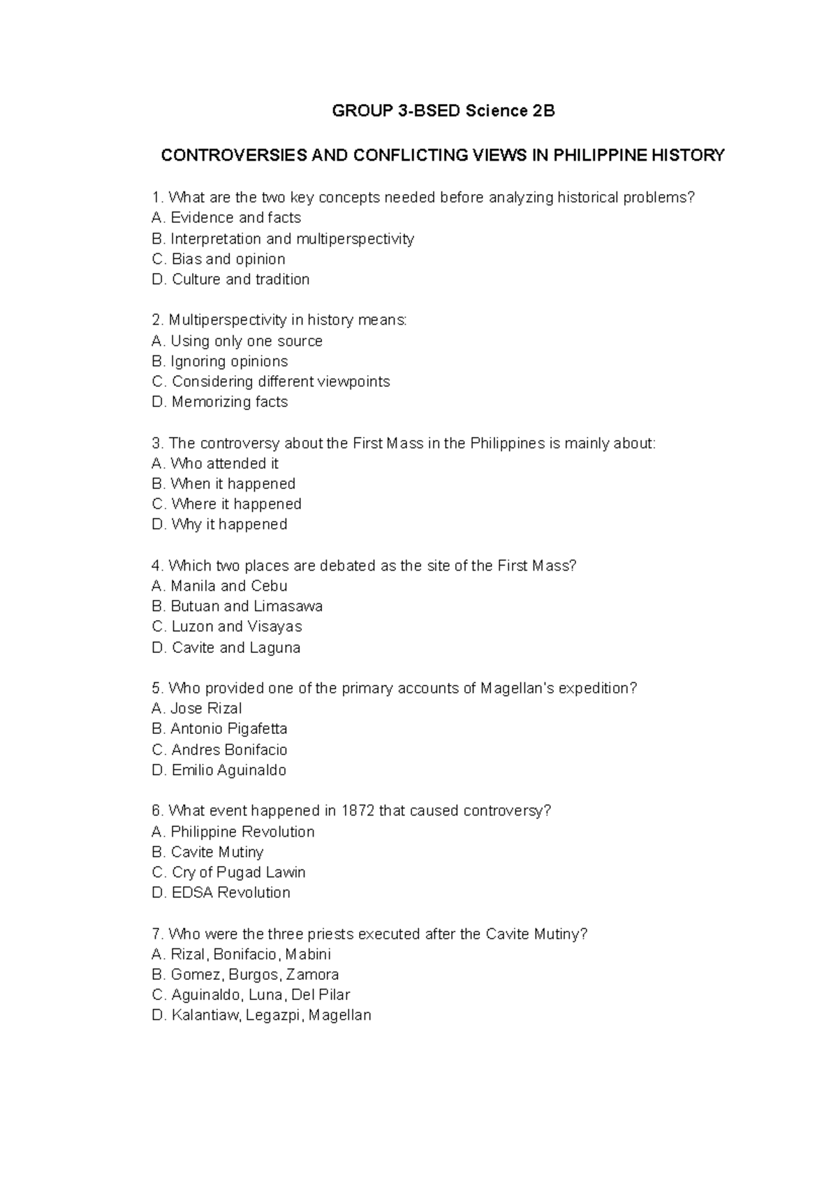 GROUP Science 2B Final Exam: Conflicting Views in PH History - Studocu