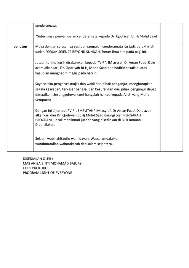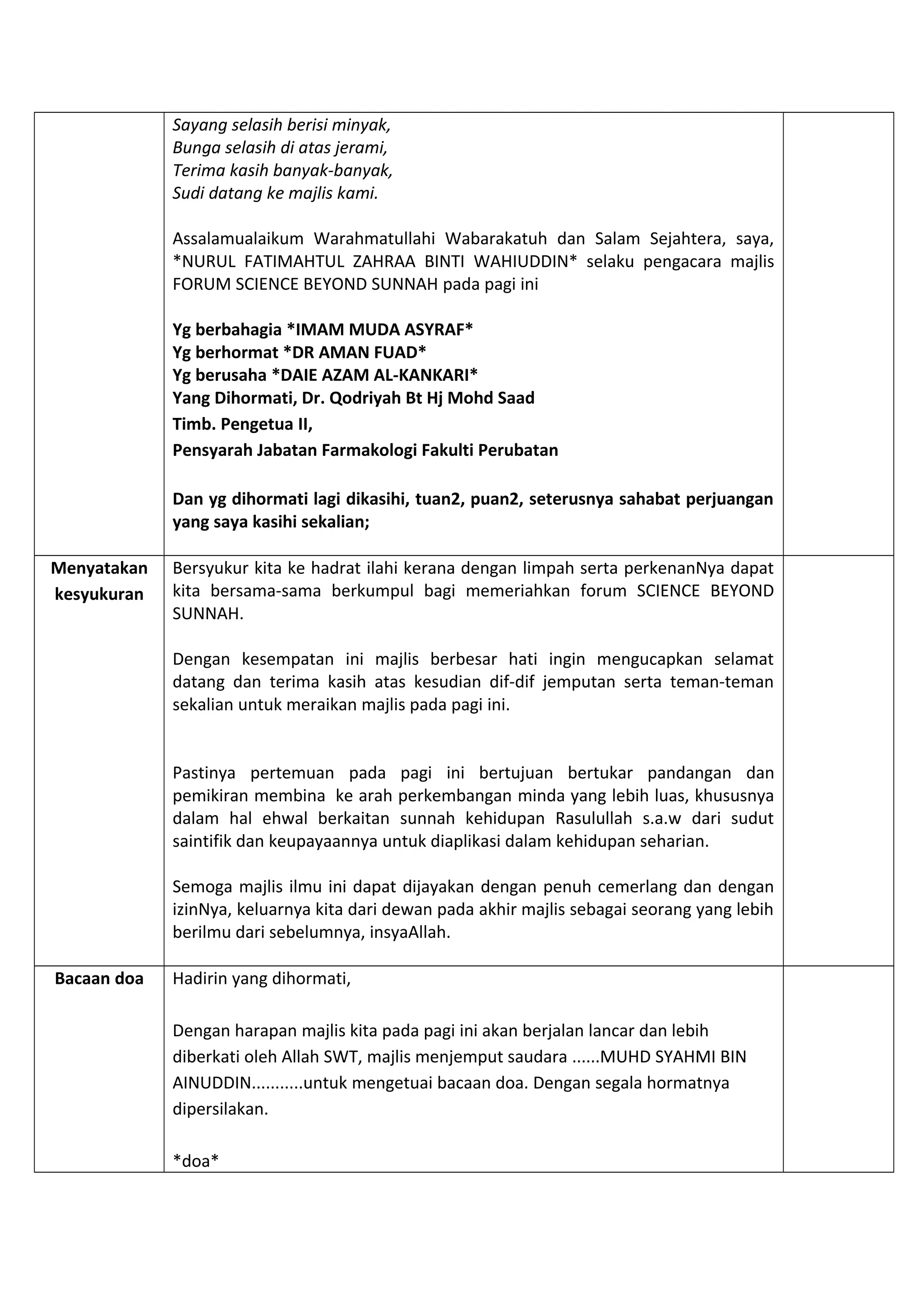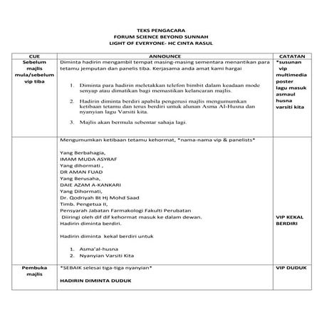Teks emcee science beyond sunnah | DOC