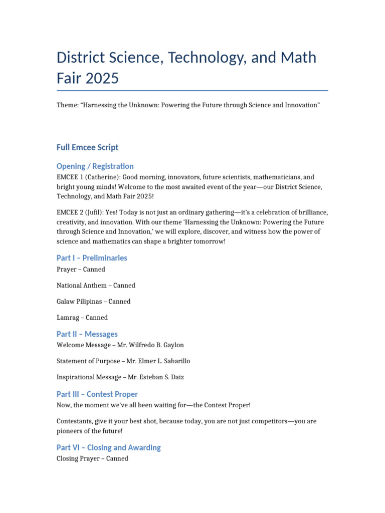 Emcee Script For Math-Science Fair | PDF