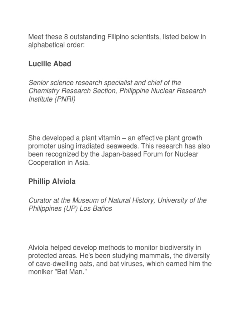 10 Most Famous Filipino Scientists and Their Contributions | PDF ...