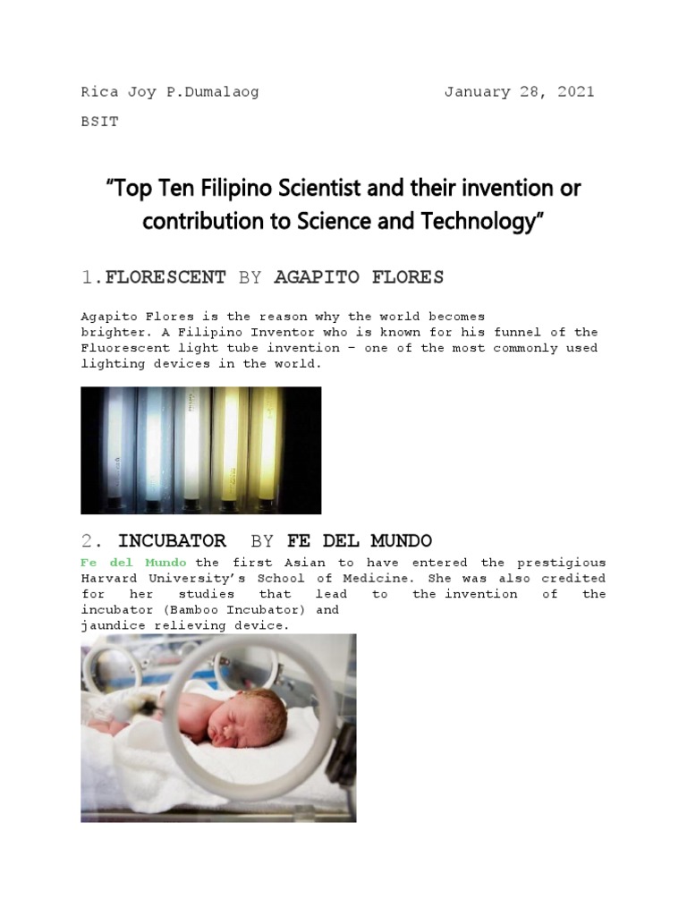 Filipino Scientists and Their Innovations | PDF | Science & Mathematics