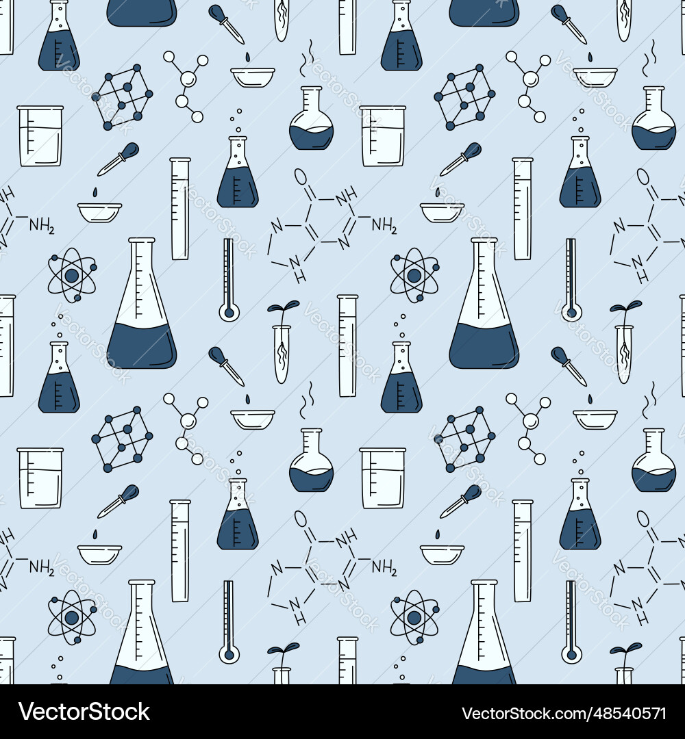 Scientific Vector Seamless Pattern Flasks Beakers Molecule Structure ...