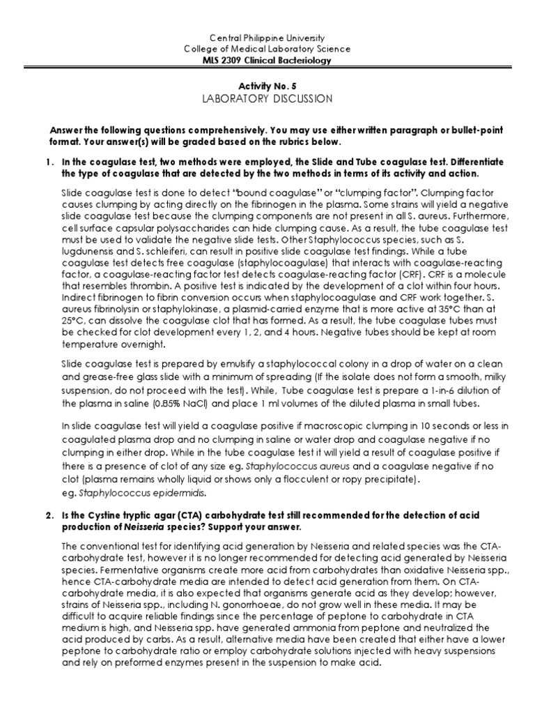 Laboratory Discussion Activity 5 | PDF | Microbiology | Chemistry