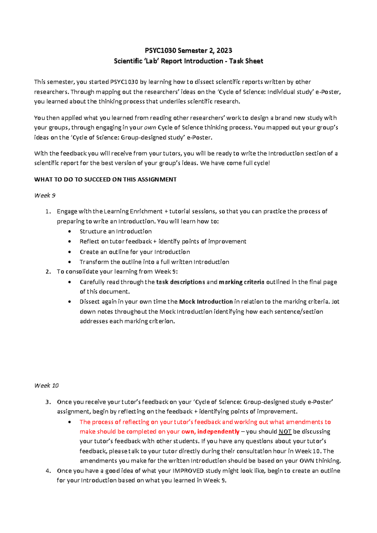 Lab report Introduction - Task sheet (S2 2023) - PSYC1030 Semester 2 ...