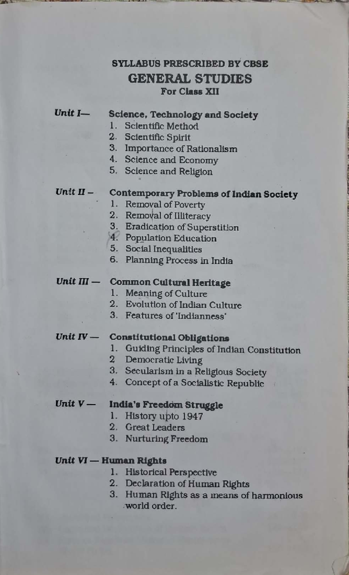 GST- UNIT I: Science, Technology, and Society for Class XII - Studocu