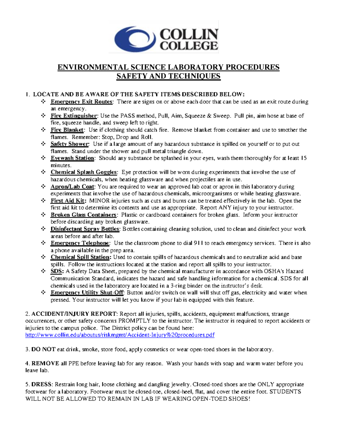 Lab safety - LAB - General laboratory procedures and safety guidelines ...