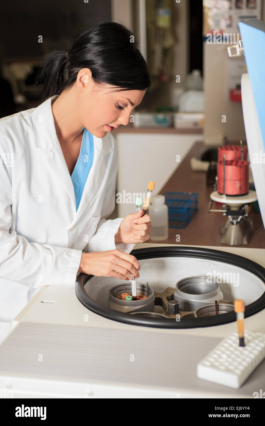 scientific worker with test tubes in laboratory Stock Photo - Alamy