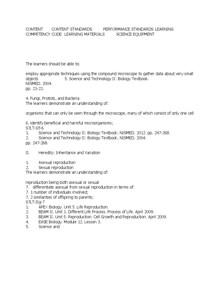 Learning - Standards - Science (2024 IX & X) | PDF | Educational ...