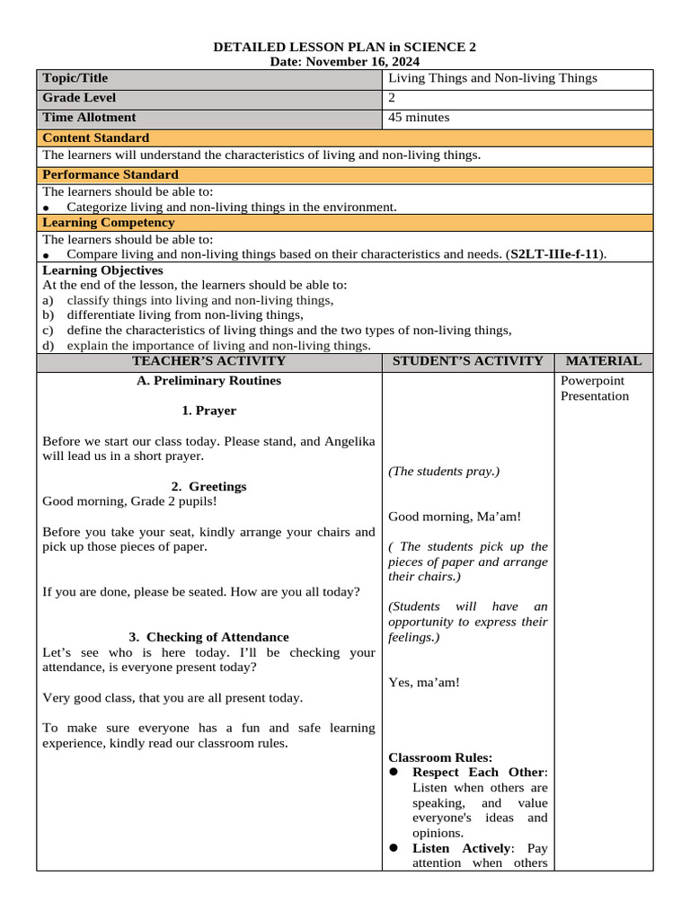 Lesson Plan For Grade 2 Science