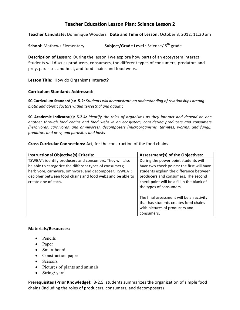 Teacher Education Lesson Plan: Science Lesson 2 | PDF | Food Web ...