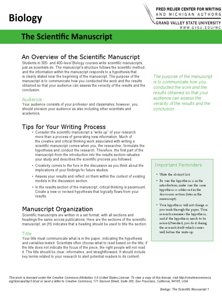 Writing Scientific Manuscripts: A Guide For Undergraduates | PDF ...