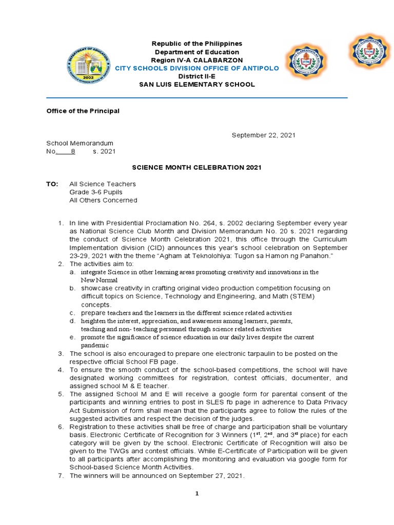 Science Month Celebration 2021 Guidelines | PDF | Teachers