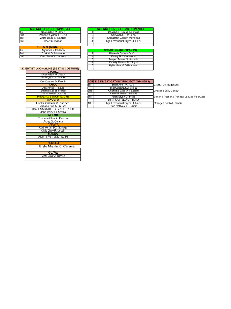 Science Month Celebration - Grade 3 Winners and Participants | PDF