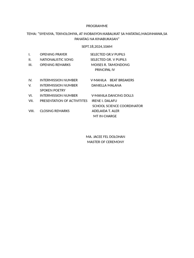 SCIENCE MONTH OPENING | 300 San Rafael, San Miguel Quiapo Manila, 1008 ...