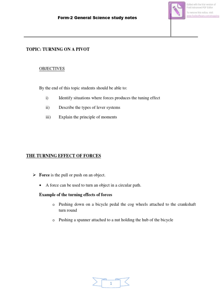 Turning On A Pivot F2 Science Study Notes | Download Free PDF | Lever ...