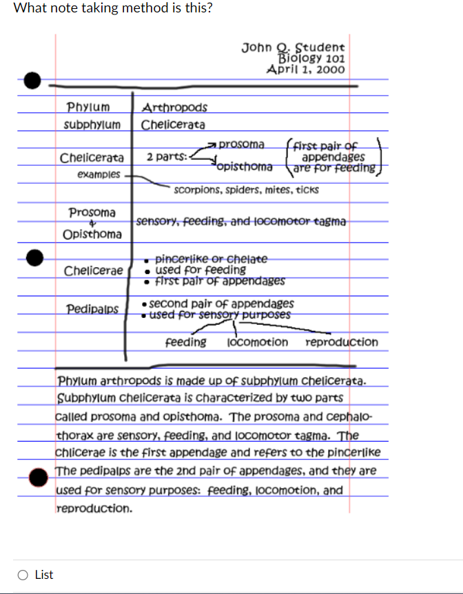 Solved What note taking method is this?List , Concept | Chegg.com