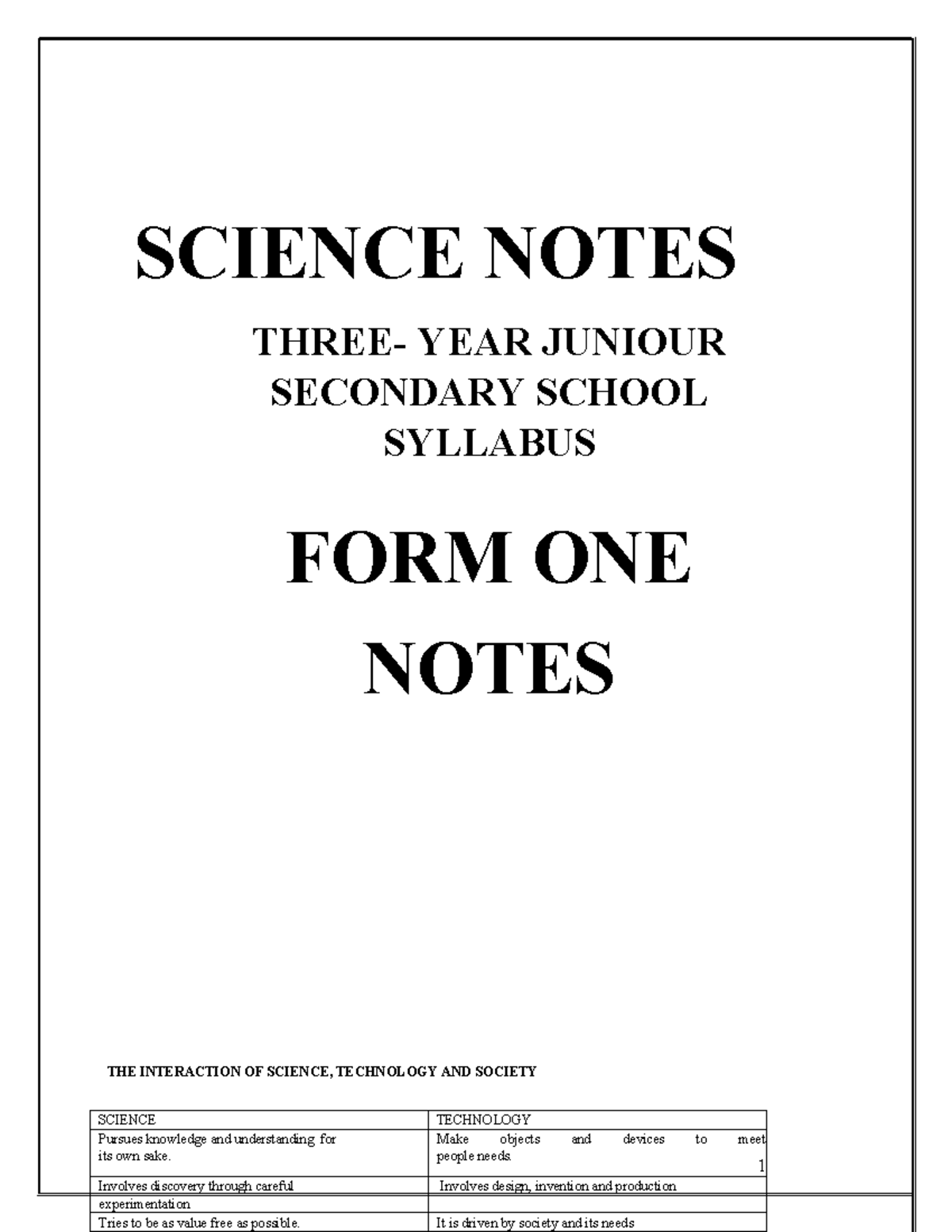 Science notes form 1 - SCIENCE NOTES THREE- YEAR JUNIOUR SECONDARY ...
