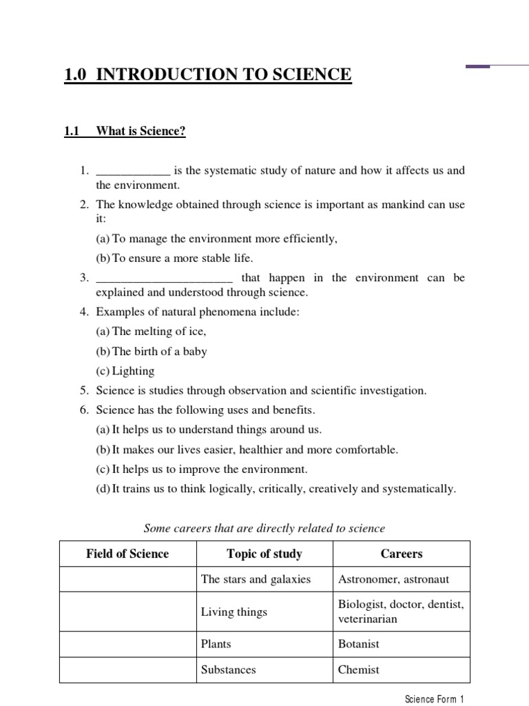 Science Form 1 Notes | PDF