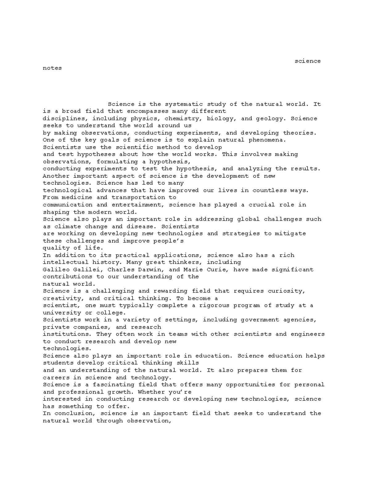 Science notes