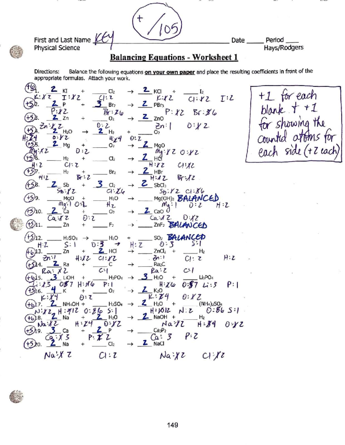 Physical Science: Balancing Equations Worksheet 1 - Studocu