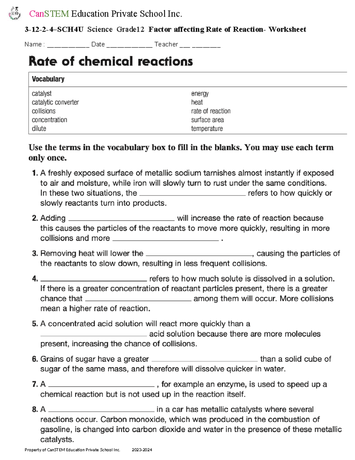 3-12-2-4-Factor affecting Rate of Reaction-Worksheet - Mat137Y1 - 3-12 ...
