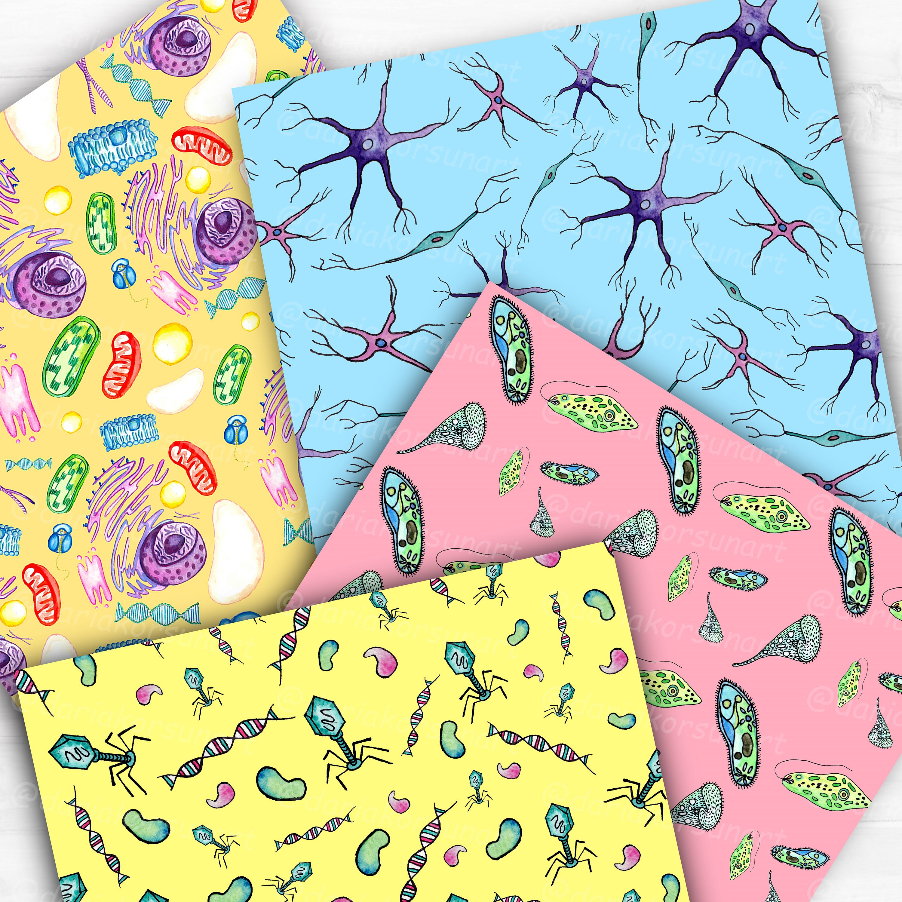 Science Pattern Digital Paper Cell World Biology Science Teacher ...