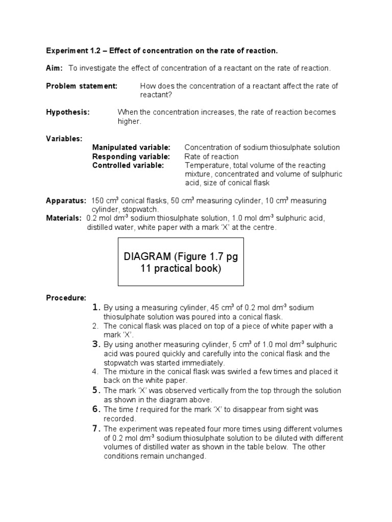 Peka F5 Experiment 1.2 | PDF | Reaction Rate | Concentration