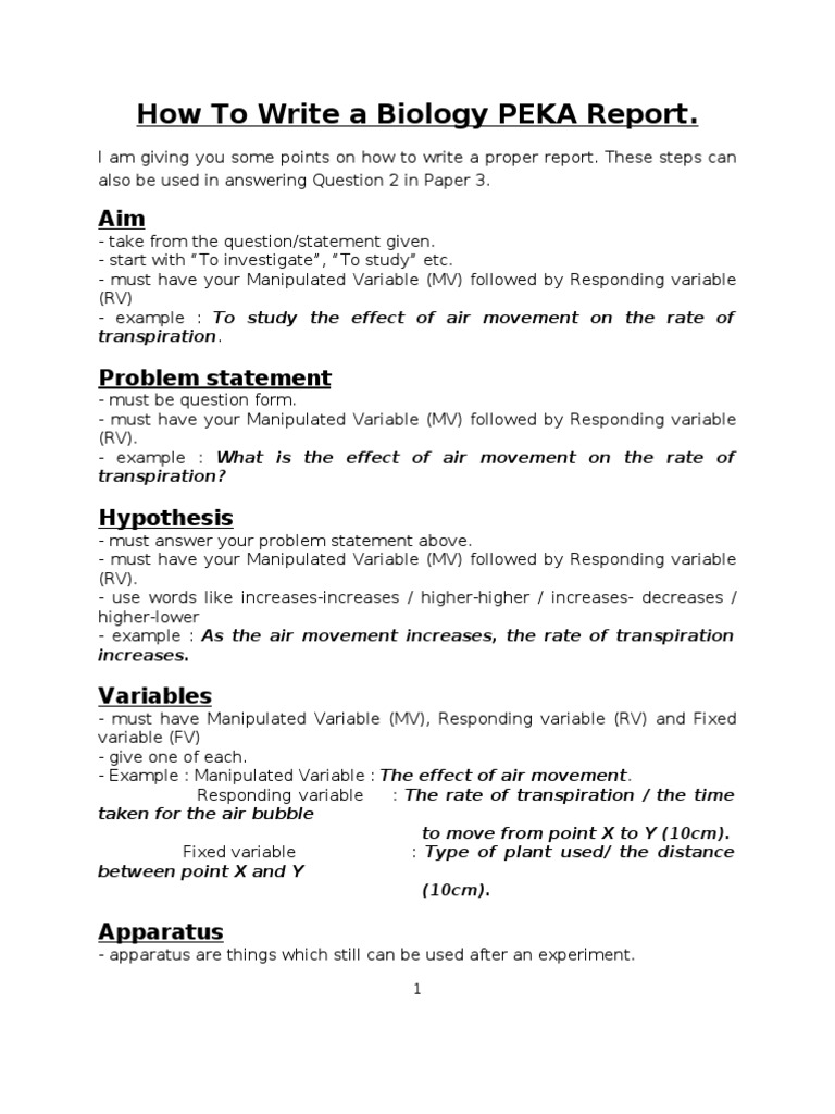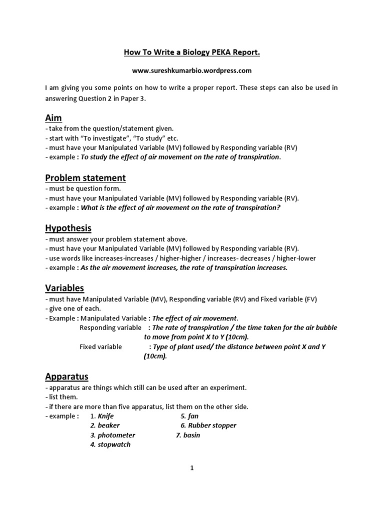 How o Write A Biology Peka Report | PDF | Experiment | Laboratories