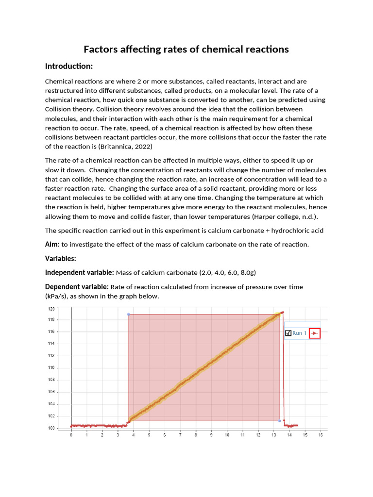 Science Prac Report Example | PDF | Reaction Rate | Chemical Reactions
