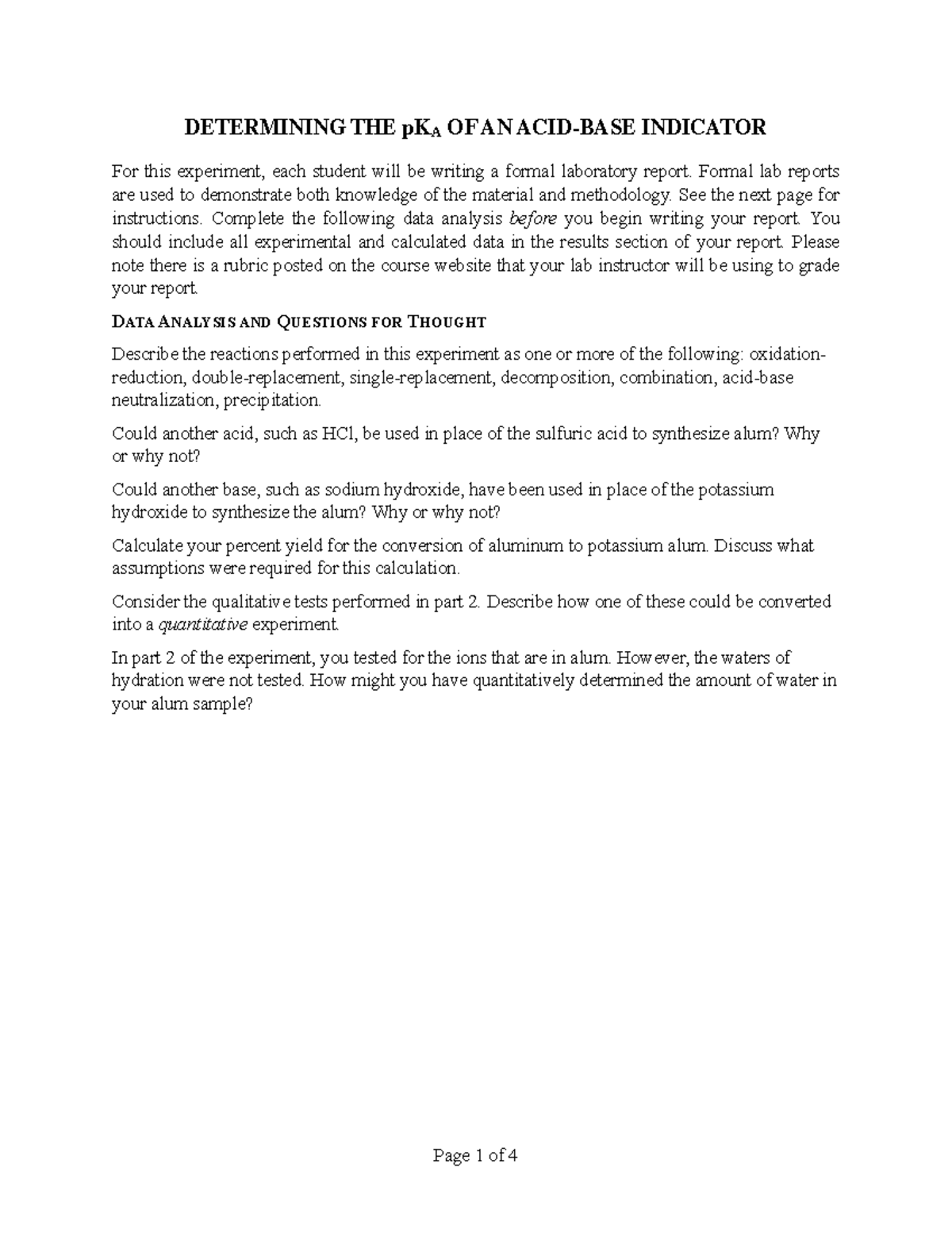 Alum Formal Report Instructions - DETERMINING THE pKA OF AN ACID-BASE ...