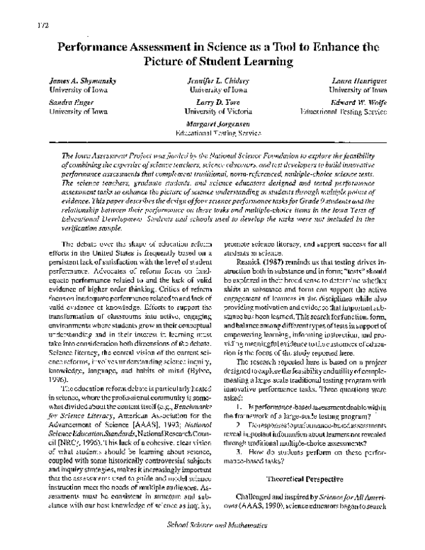 (PDF) Performance Assessment in Science