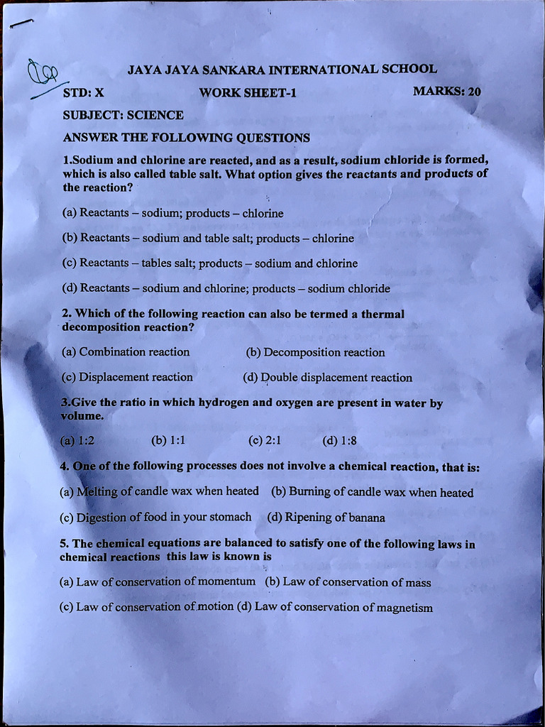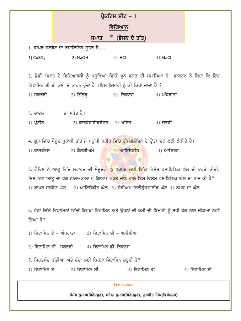 Science Practice Sheet 1-Pages-1 | PDF | Sodium Hydroxide | Vitamin