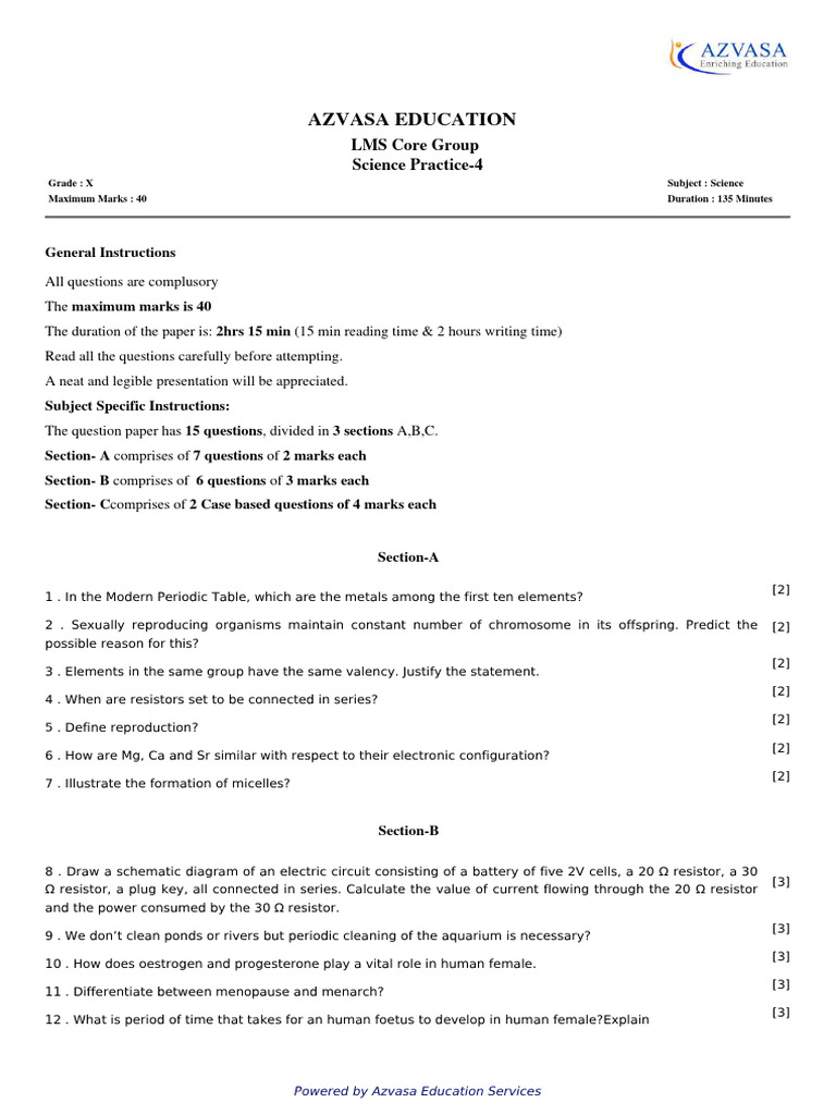 Science Practice Paper-4 | PDF | Reproduction | Resistor