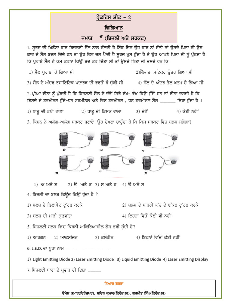 Science Practice Sheet 6 Class 7th | PDF | Electromagnetism | Electricity