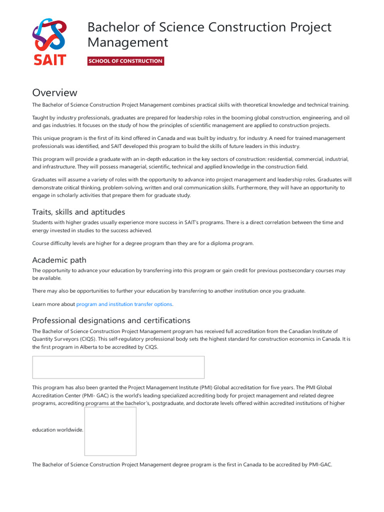 Bachelor of Science Construction Project Management (1) | PDF