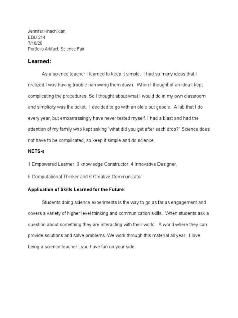 Science Fair Reflection | PDF | Experiment | Cognitive Science