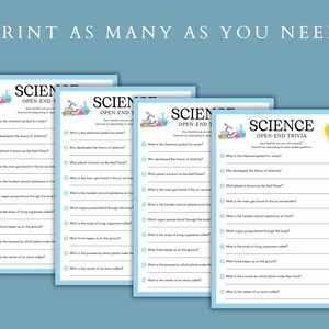 Printable Science Open-end Trivia Game | Digital Download | Fun Student ...
