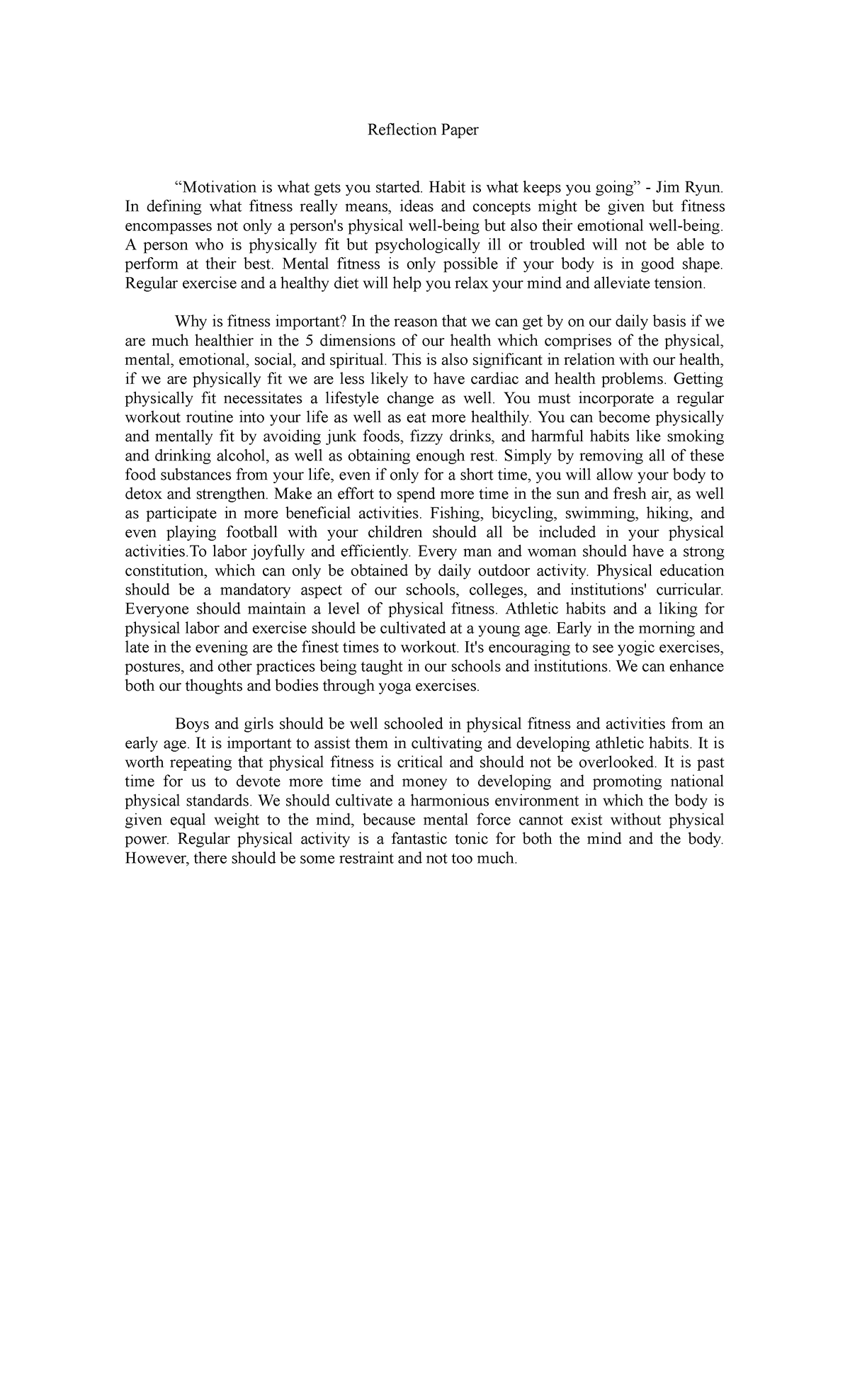 SOLUTION: Reflection paper highschool docx - Studypool