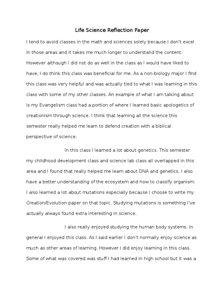 Life Science Reflection Paper | PDF | Creationism | Science