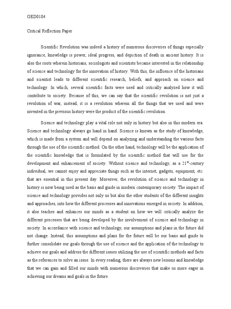 Science and Technology Reflection Paper.pdf - Science and Technology ...