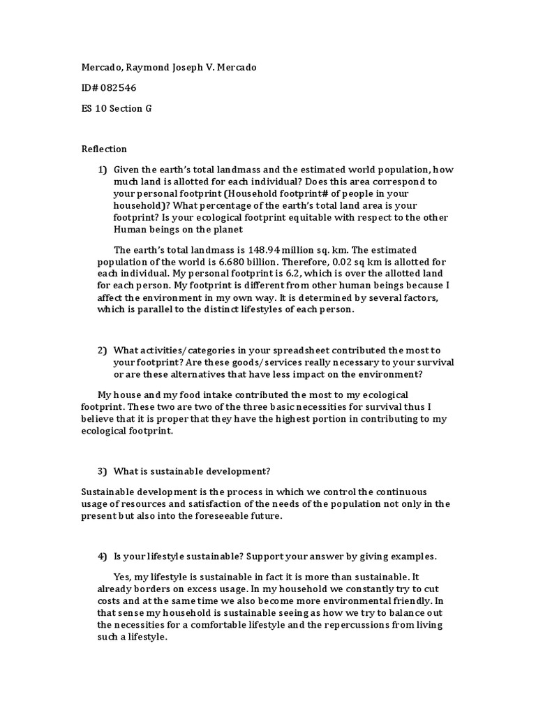 Environmental Science Reflection Paper | PDF | Wellness