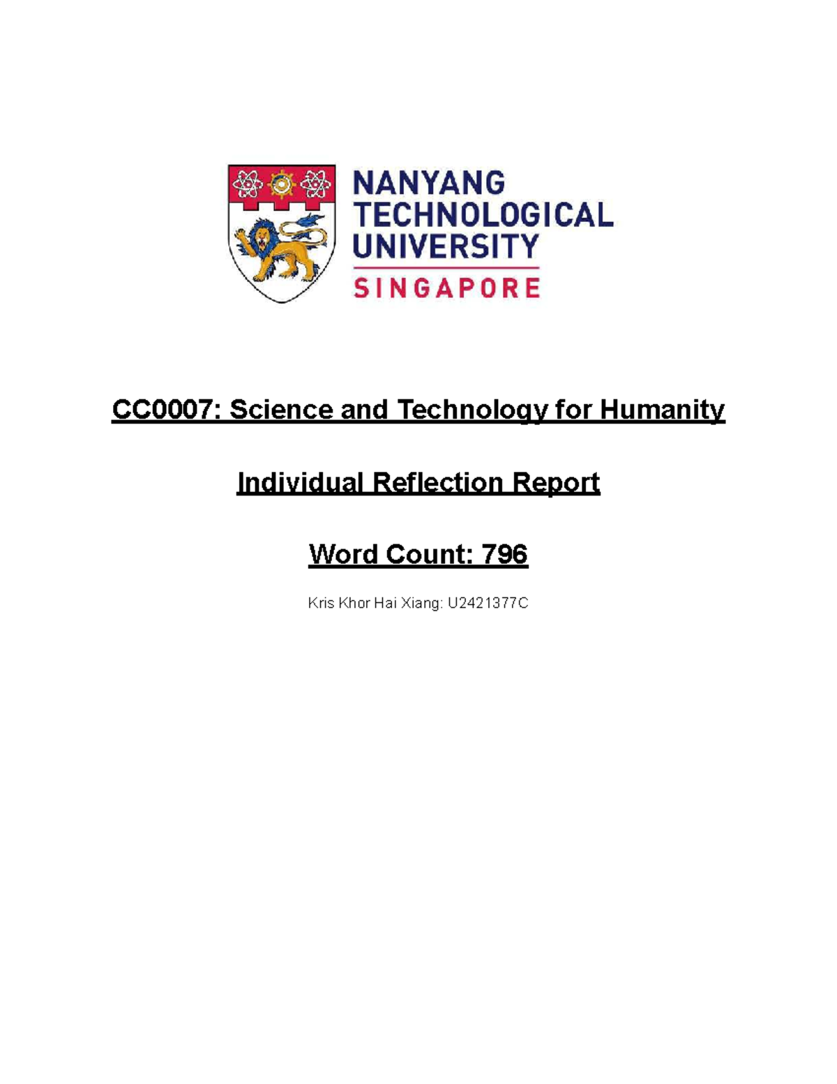 CC7 Reflection Paper: Insights on Science & Tech for Humanity - Studocu